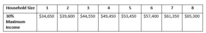 APPLICATIONS MUST BE SUBMITTED ONLINE.Applicants must have household income at or below 30% of the 2025 HUD area median income. See income limits below.